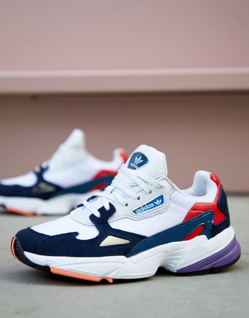 Adidas Originals White And Navy Falcon Sneakers Asos