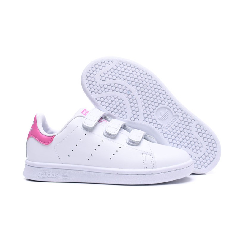 Girls White Pink Adidas Stan Smith Trainers Schuh