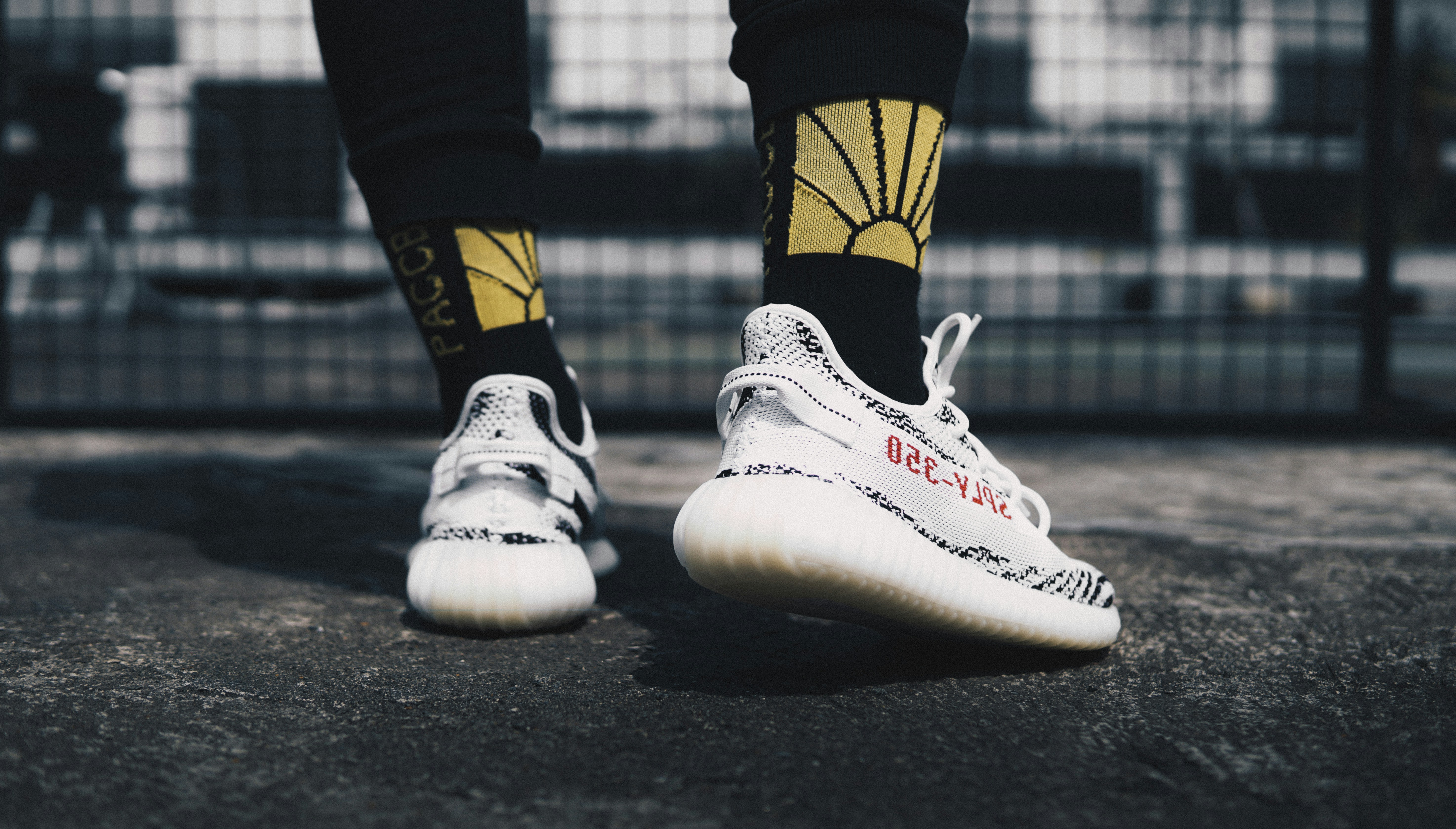 Person Wearing Zebra Adidas Yeezy Boost 350 V2 S Photo Free