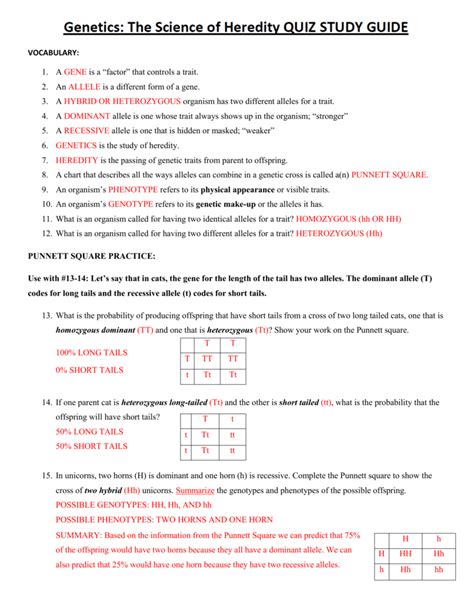 Genetics: The Science of Heredity Worksheet
